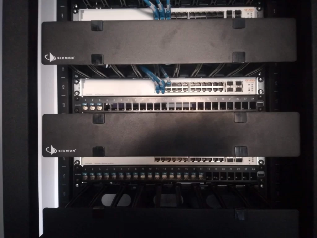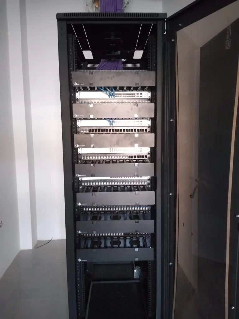 🔹 Racks y gabinetes – Soporte para equipos de red y gestión de cables.